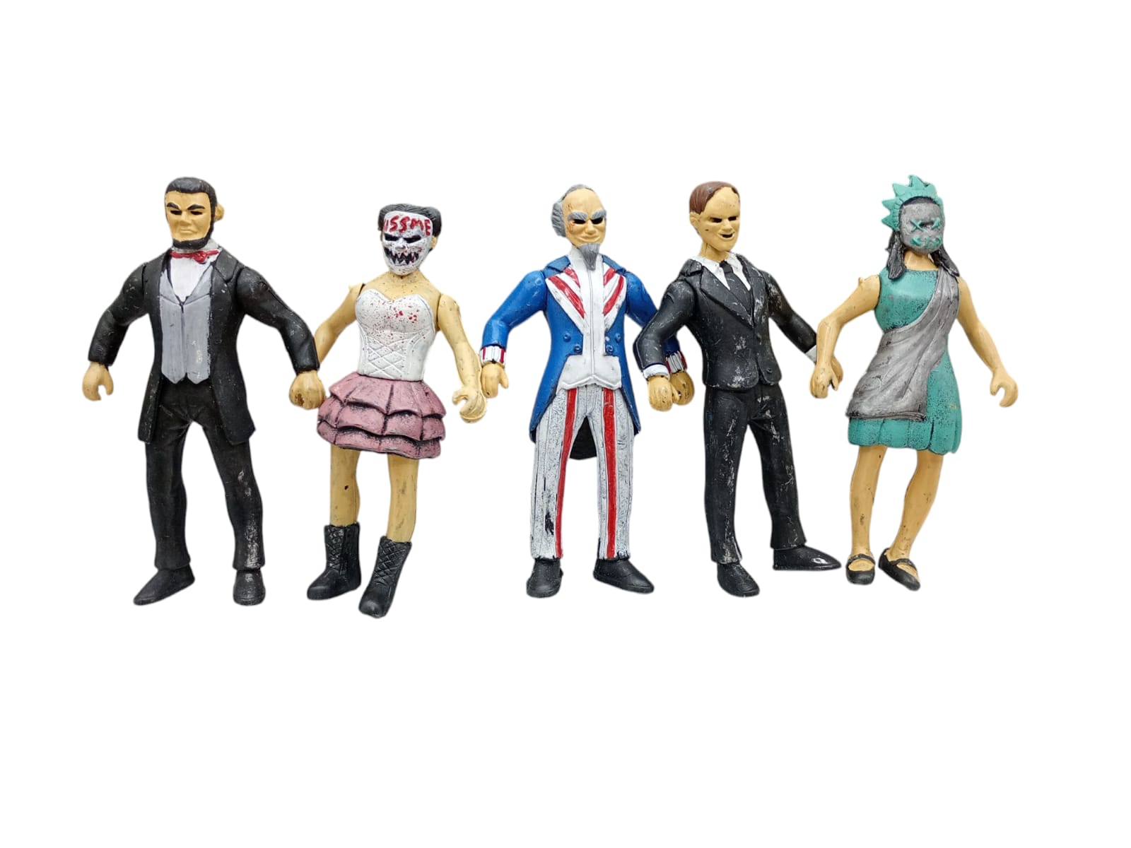 Este set de 5 figuras de La Purga, hechas de plástico resistente, mide aproximadamente 5 cm cada una. Con articulaciones y accesorios incluidos, permite a los niños a partir de 3 años crear aventuras llenas de acción y diversión. ¡Ideal para estimular la imaginación y horas de juego emocionante!