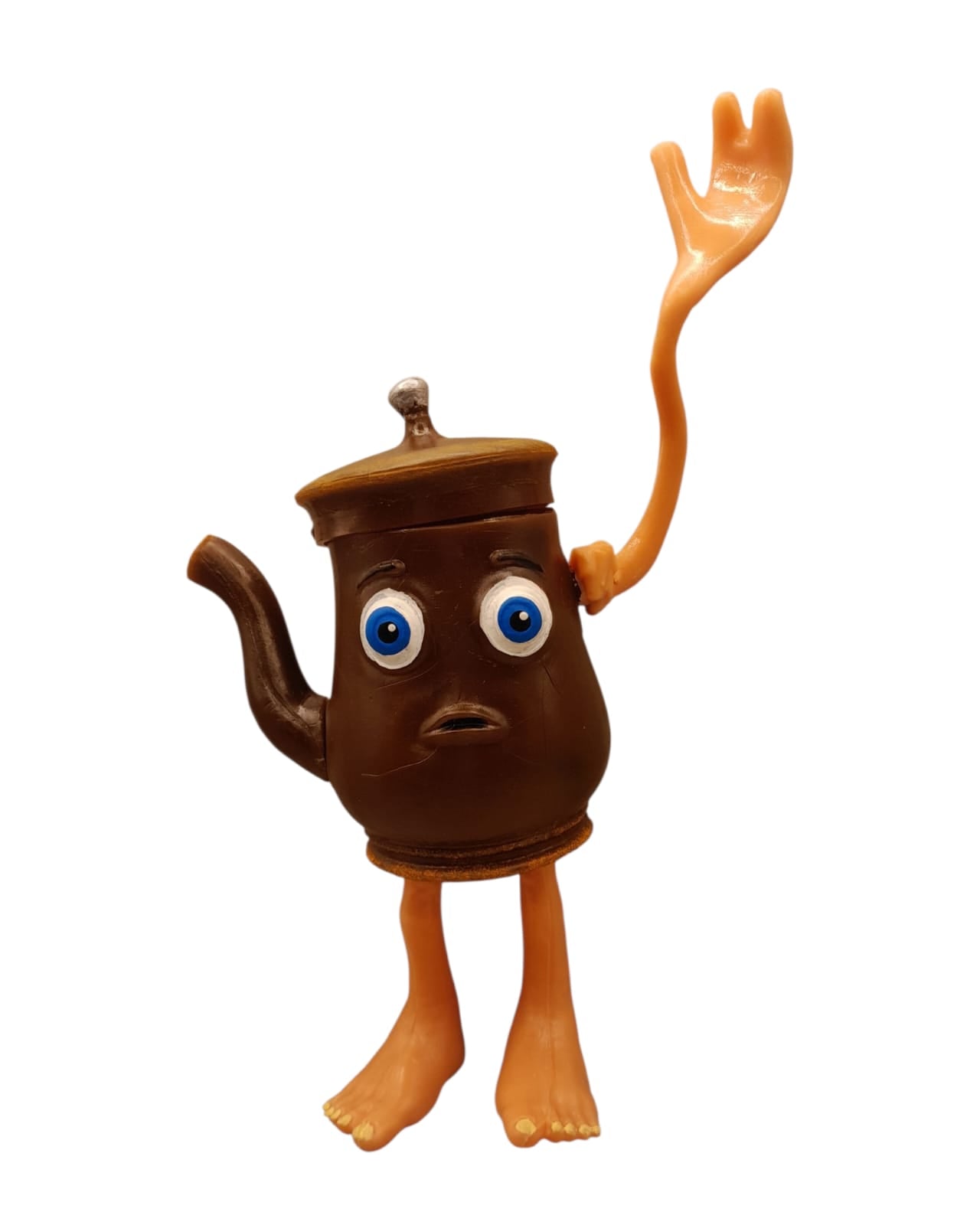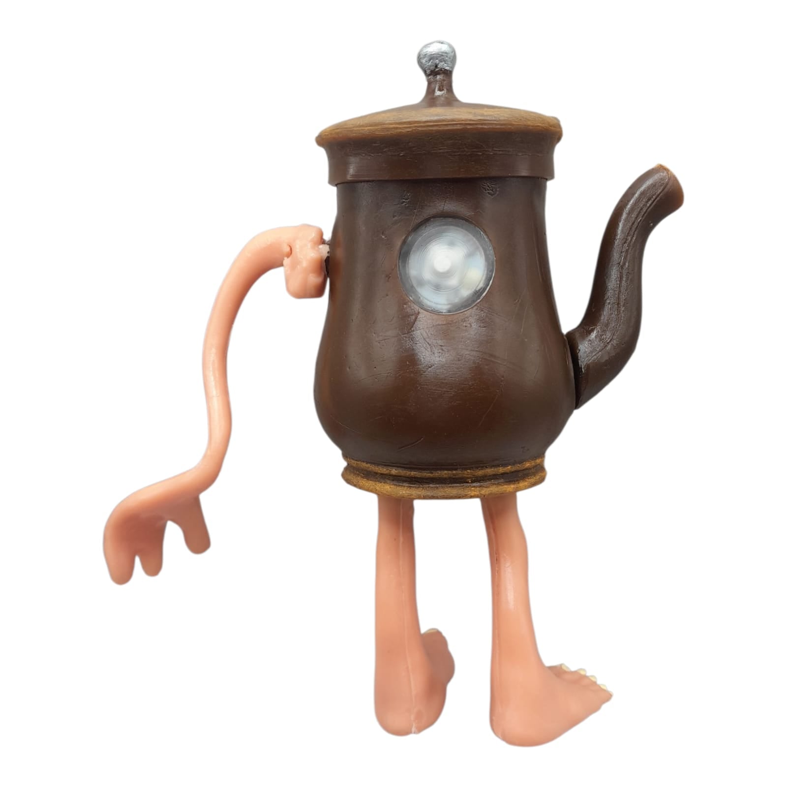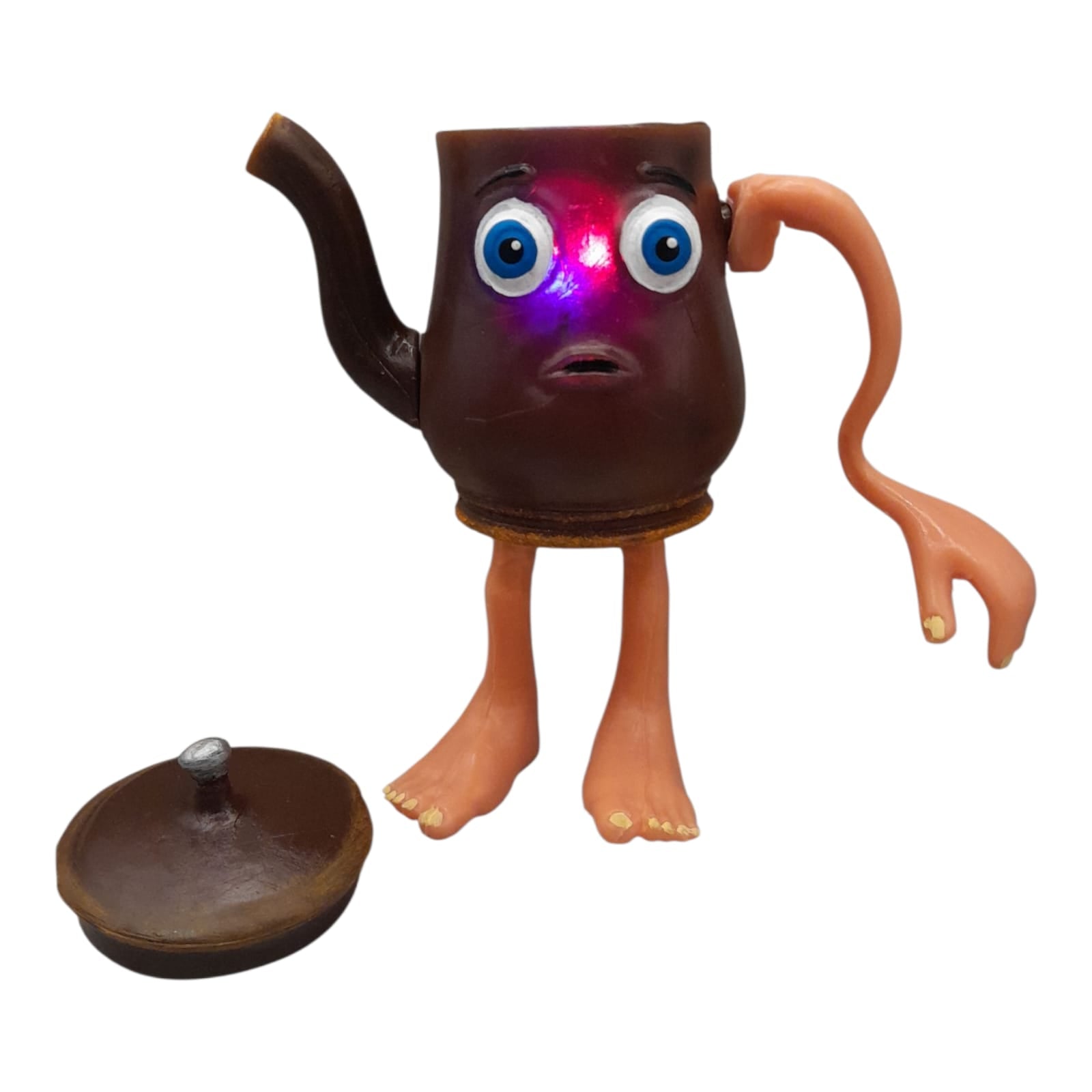 La Tetera de los Tralaleros mide 20 cm de alto y pesa 200 gramos. Se puede destapar como una tetera real, y sus brazos y pies giran para mayor diversión. Además, incluye luz tipo LED que la hace aún más atractiva para los pequeños aventureros. Un juguete perfecto para despertar la imaginación y el juego creativo.